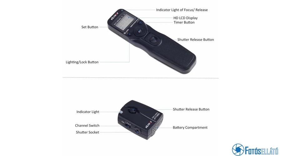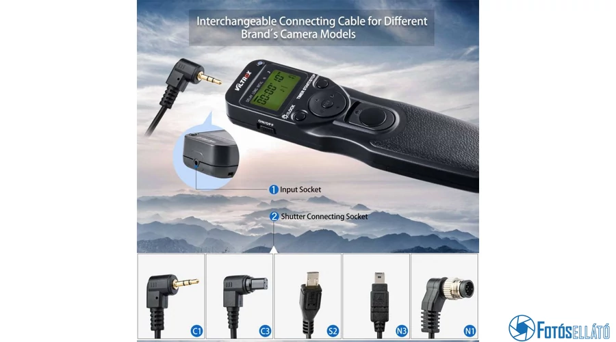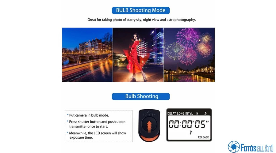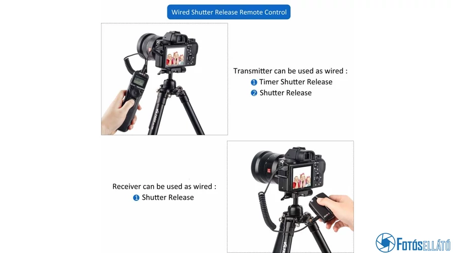 | Vezetékes vagy vezeték nélküli időzíthető távkioldó. A vezeték hossza kb. 85cm hosszú. | |