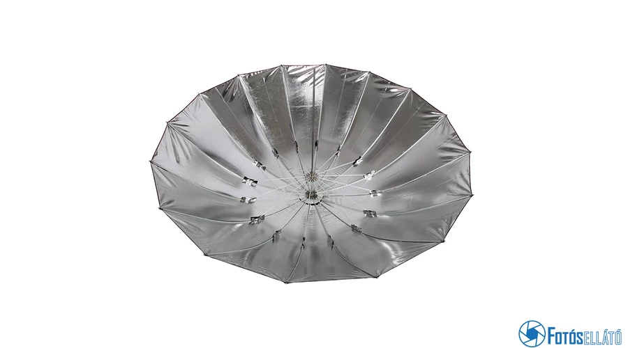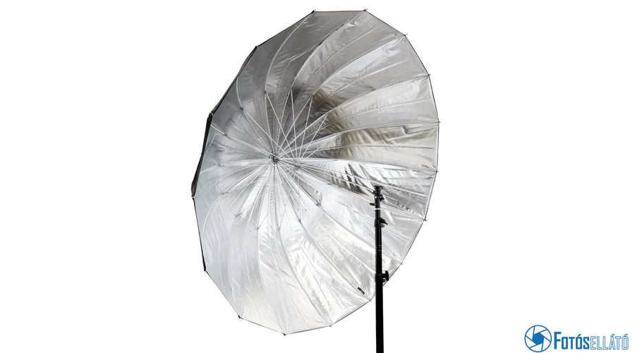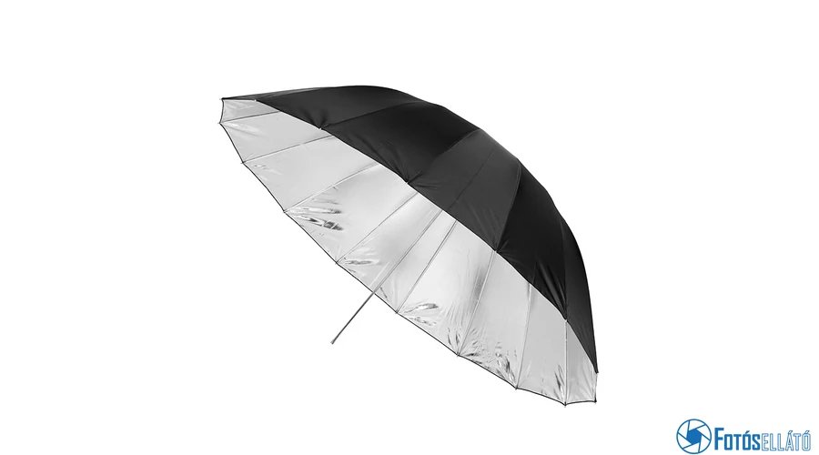 Fekete/ezüst ernyő 152cm átmérővel. Az ezüst reflex ernyő segít a kontrasztos képek és a ragyogó színek visszaadásában.