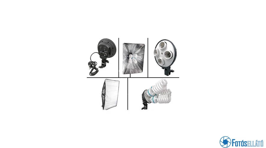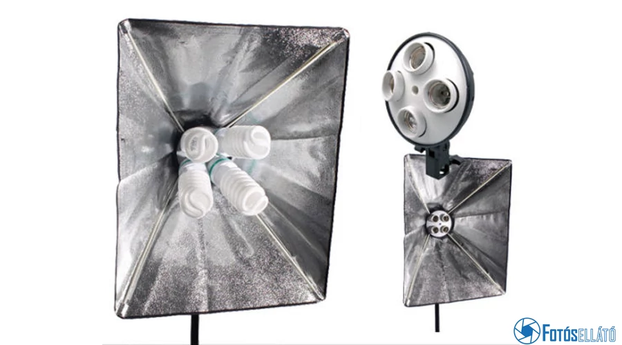 A 4 E27-es foglalattal rendelkező tartó magában foglalja az izzók üzemeltetéshez a 3A-es biztosítékot, és a hálózati kábelt. A foglalat maximális kapacitása 4x 150W (600W). A tartóba softbox helyett akár ernyő is helyezhető, ehhez a tartó közepén kialakított nyílás ad lehetőséget.