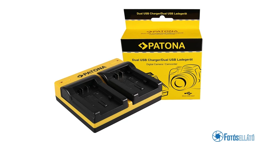 Patona DUPLA AKKUMULÁTOR TÖLTŐ PANASONIC VW-VBK180 H H100 H101 H95 VW-VBK180 HC HCV700 HC-V700 MICRO USB KÁBELLEL