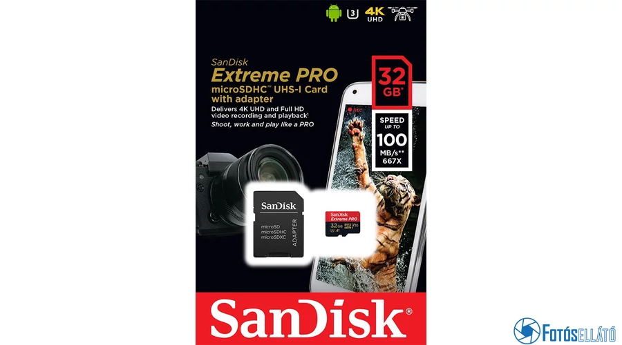 Vásároltál egy új 4K-s kamerát, és most a 4K-s felvételek és fotók optimális tárolója után kutatsz? Ha igen, akkor vess egy pillantást a SanDisk SDXC Extreme Pro memóriakártyára, amely SDXC formátumú, és 32 GB-os memóriája több órányi felvett videó és több ezer fénykép tárolására elegendő. A kártya nagy átviteli sebességgel rendelkezik (akár 100 MB/s sebességgel is képes olvasni), amely biztosítja a 4K-s videók precíz felvételét és lejátszását.