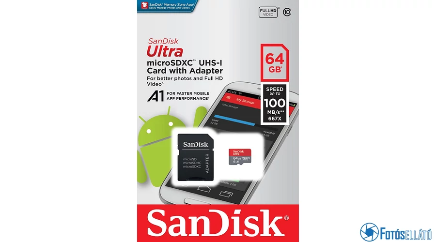 SanDisk MicroSDXC Ultra 64GB + SD adapter memóriakártya - fontos paraméterek