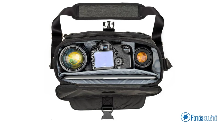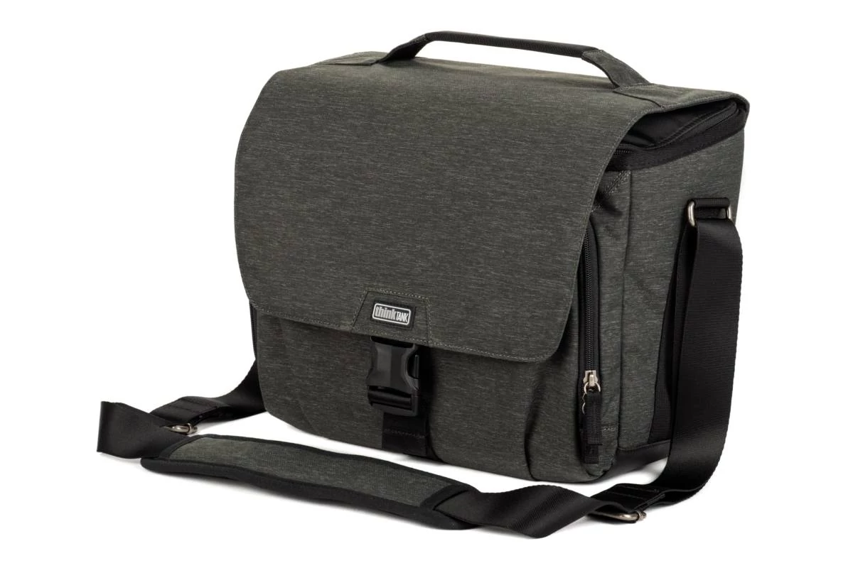 Ez a Think Tank sötét olíva Vision 13 válltáska egy sokoldalú, messenger stílusú kamera táska, amely közepes méretű DSLR-t képes tárolni kettő-négy lencsével, beleértve egy leválasztott 24-70 mm f / 2,8 lencsét.