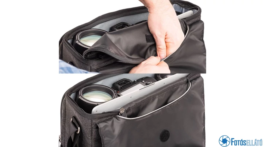 A Vision 13 fő rekesze tartalmaz egy 10 "-es tablet zsebet vagy egy 13" laptop zsebet és két párnázott, állítható elválasztót.