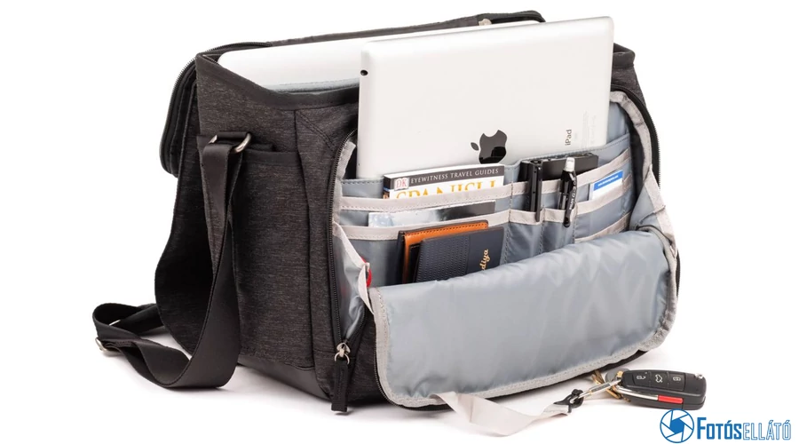Ez a Think Tank Vision 13 válltáska egy sokoldalú, messenger stílusú kamera táska, amely közepes méretű DSLR-t képes tárolni két-három lencsével, beleértve egy leválasztott 24-70 mm f / 2,8 lencsét.